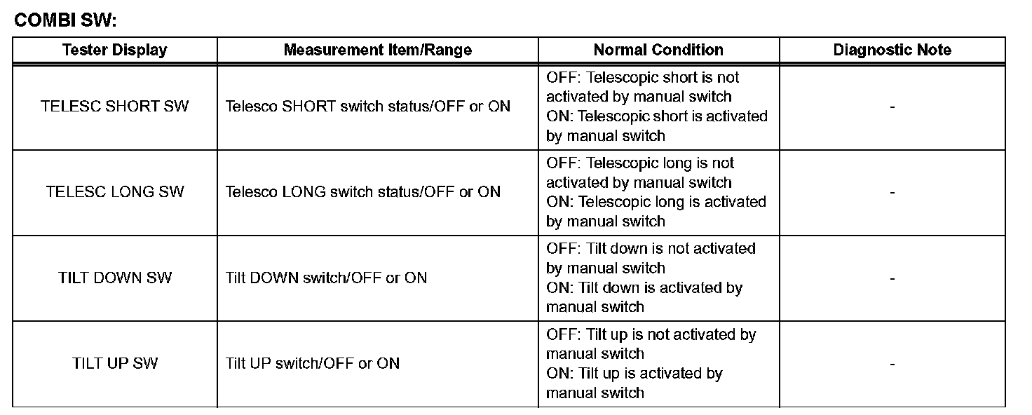 (2) Techstream - Select: Body / Tilt & Telescopic / Active Test /