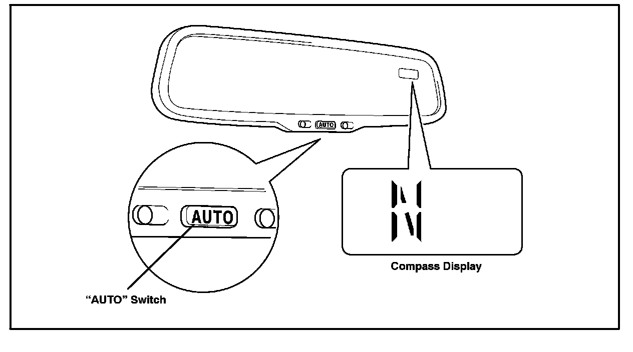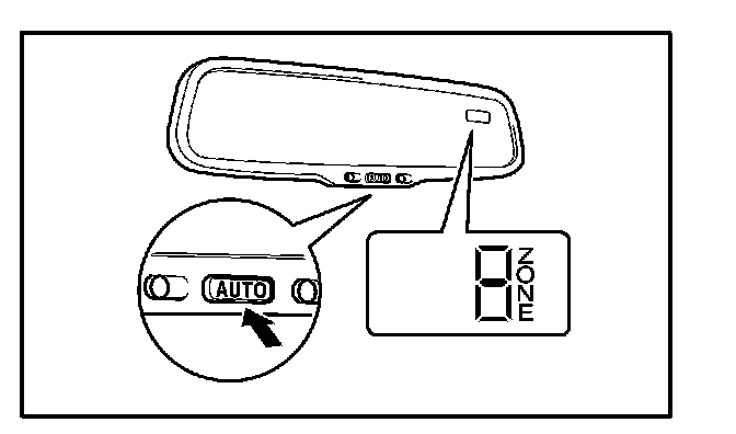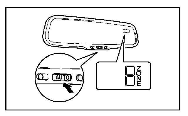 2. Push and hold the AUTO" switch on the mirror for 6 seconds until the zone number appears on the compass display.