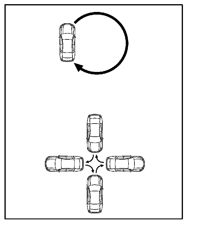 6. Drive the vehicle slowly at 5 mph (8 km/h), or less, in a circle until the direction is displayed. If there is NOT enough space to drive in a circle, turn the car around as shown, doing two three-point turns in succession.