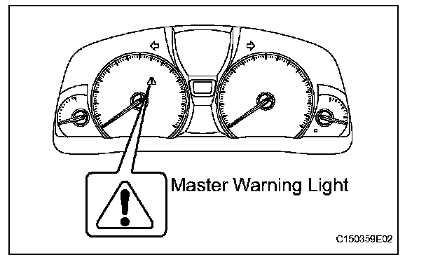 41. STEERING ANGLE SENSOR INITIALIZATION (to obtain a tire angle (during straight-ahead driving) signal)a. Turn the engine switch on (IG), and check that the master warning light illuminates for a few seconds.