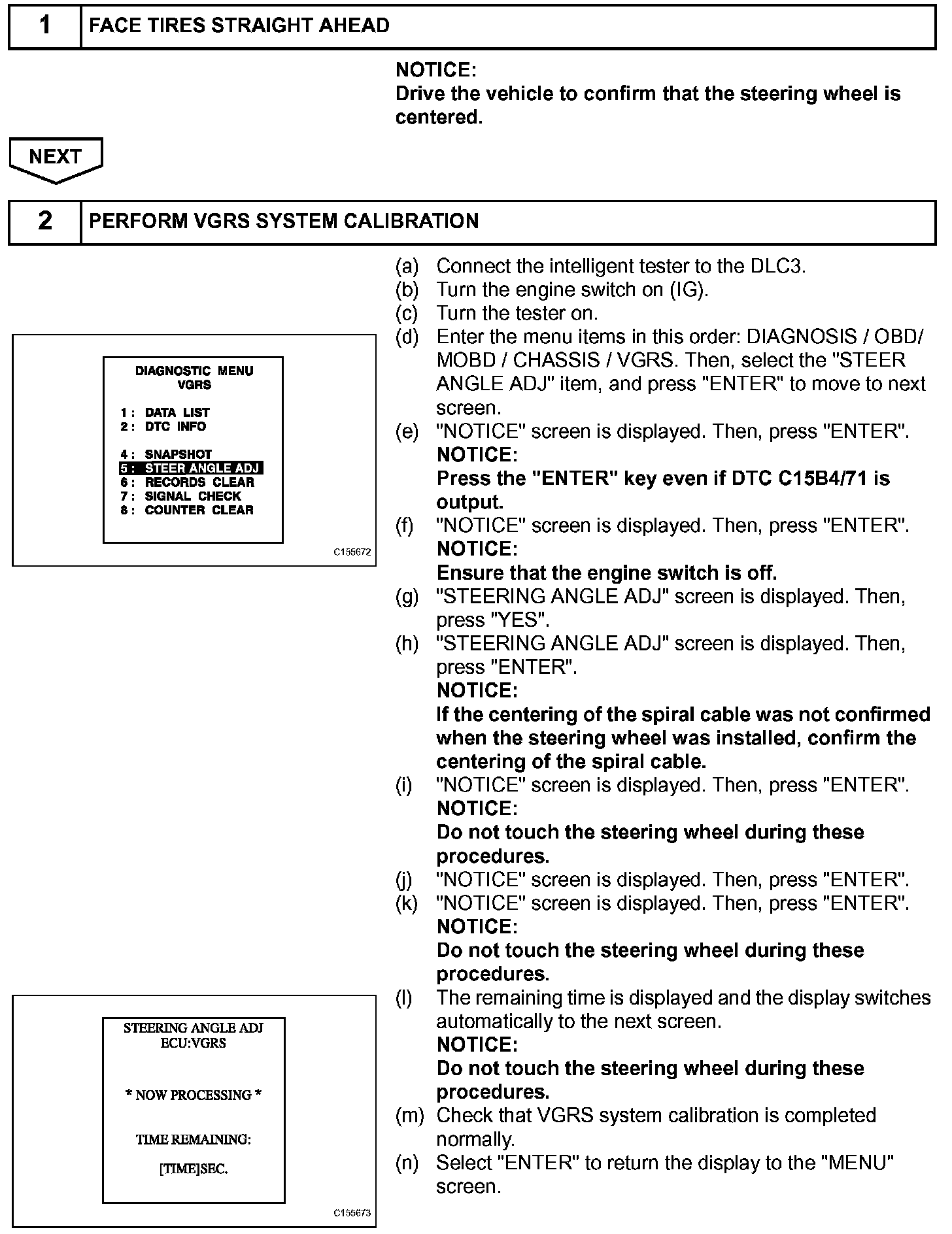 44. VGRS SYSTEM CALIBRATION PROCEDURE (USING TECHSTREAM)