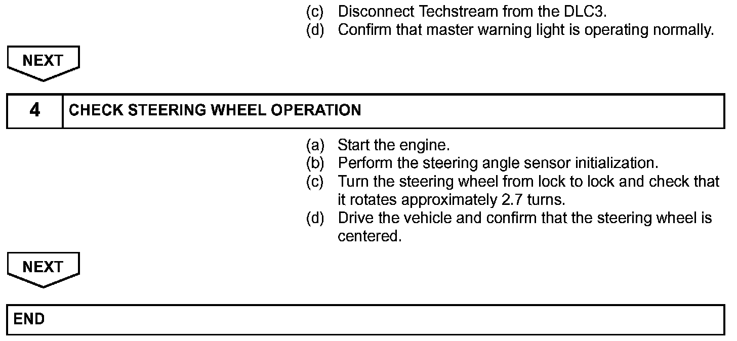 c. Confirm that steering angle sensor initialization is completed (using the tester).