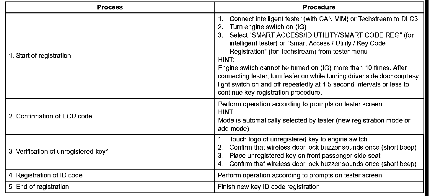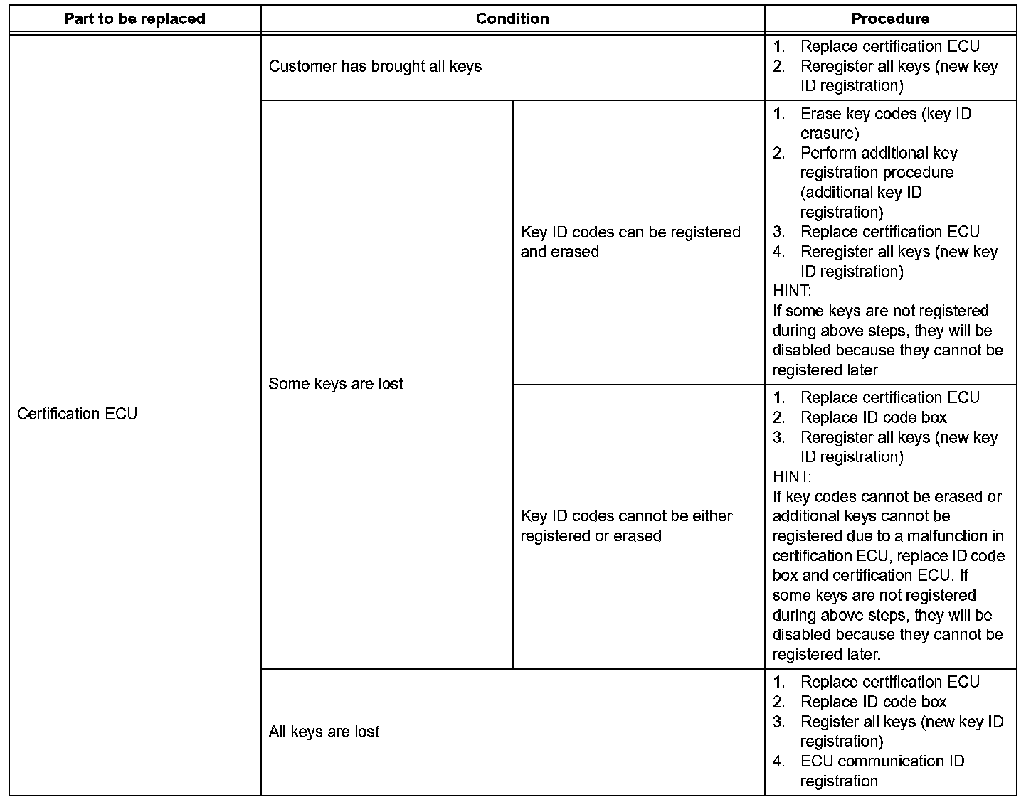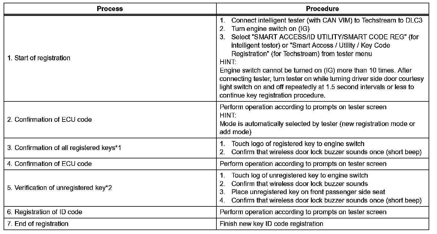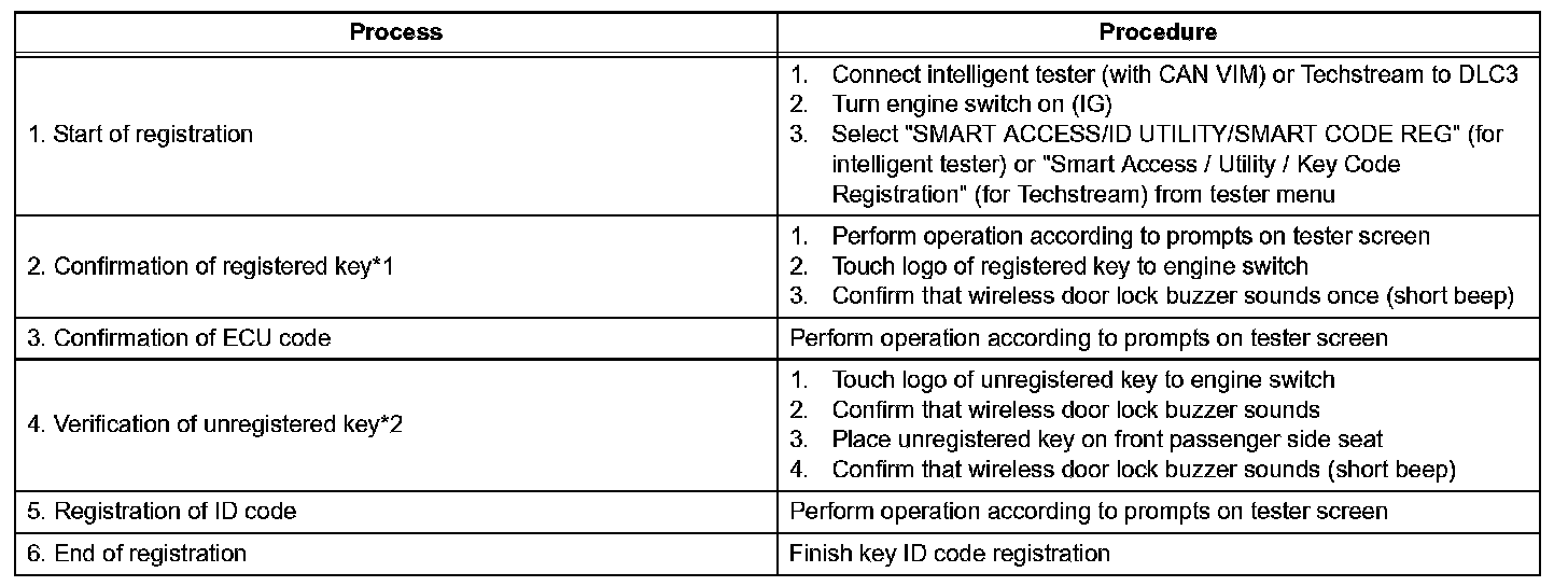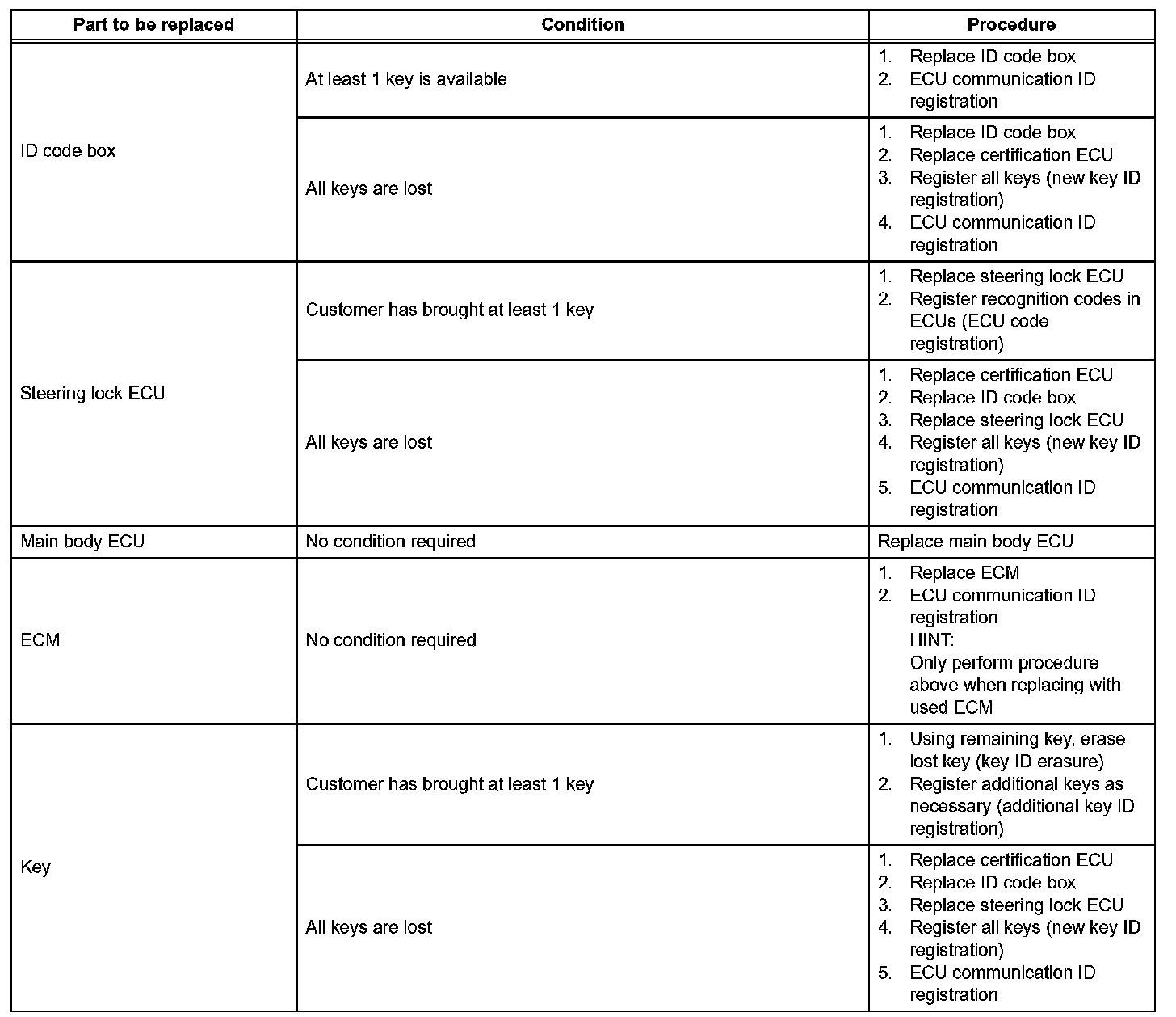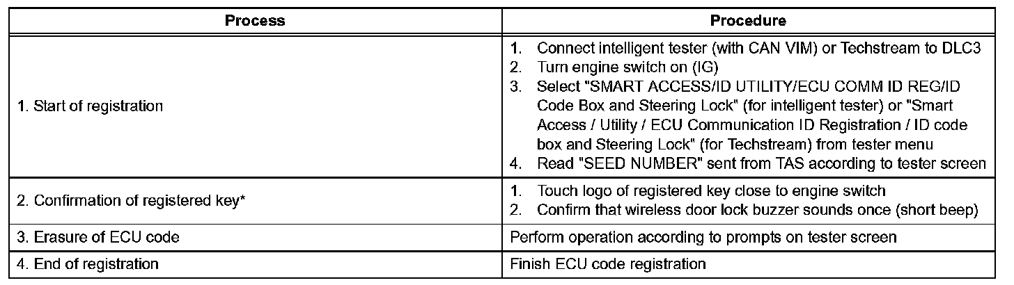 - Code registration is needed when the certification ECU, ID code box, steering lock ECU, ECM or key is replaced with a new one.