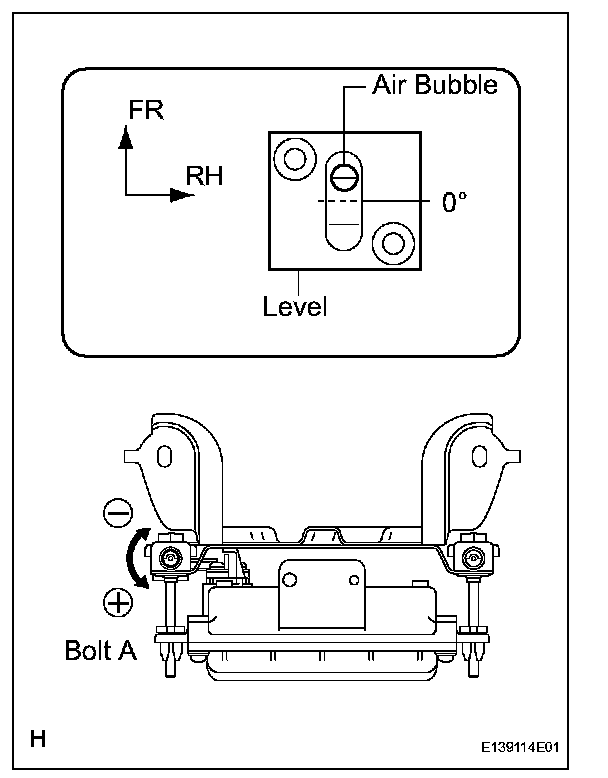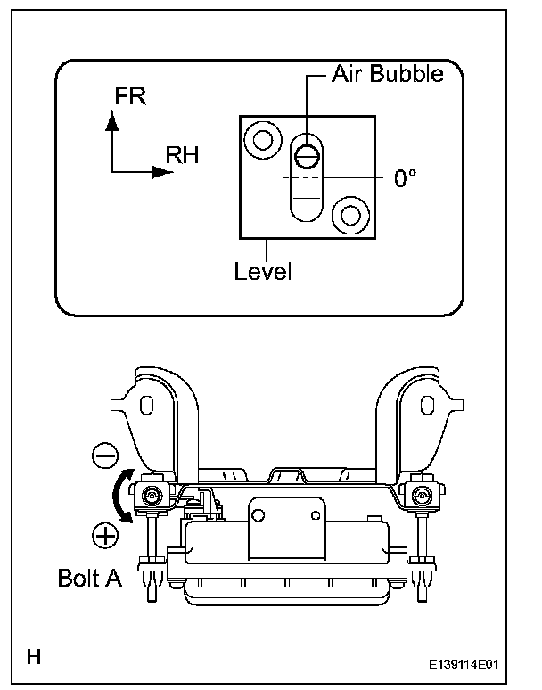 If the axis is not as specified, use a hexagon wrench to adjust bolt B until the divergence of the radar beam axis is 0°.