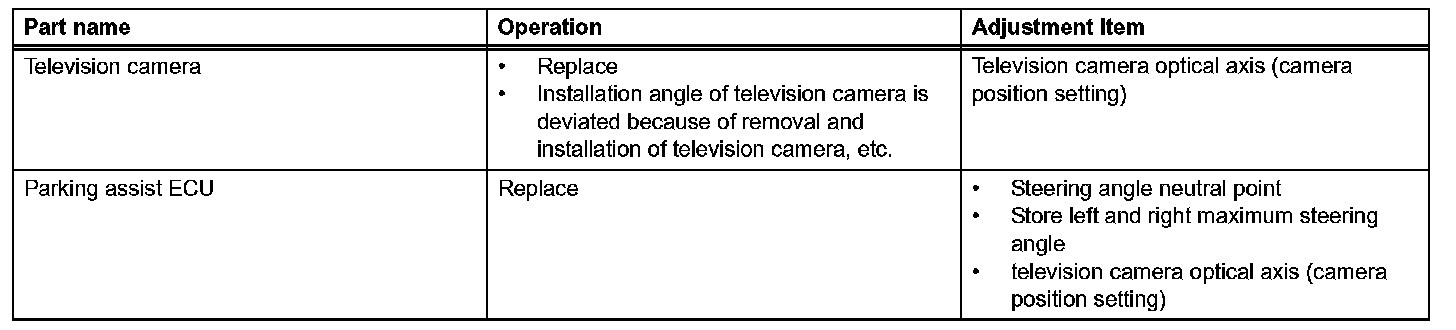 HINT: If the parking assist ECU is replaced, screen noise adjustment is automatically performed when steering angle setting and camera position setting are performed.