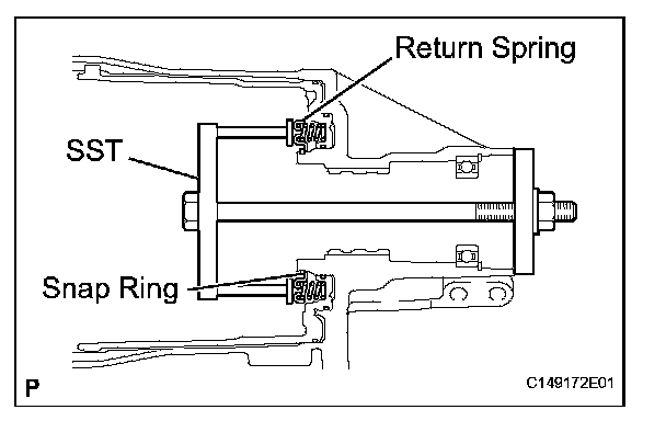 (f) Place SST on the clutch balancer and compress the return spring with a press.