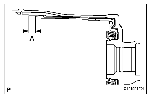 (a) Measure length A (from the tip of the No. 2 brake piston to the step in the transmission case) in the illustration. *1
