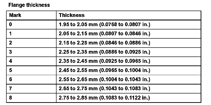 (c) Choose a No. 2 brake flange so that the value of measured length A minus length B (from steps *1 and *2) is 0.52 to 0.82 mm (0.0204 to 0.0323 in.).