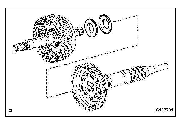 (a) Install the thrust bearing race, thrust needle roller bearing and sun gear input drum.