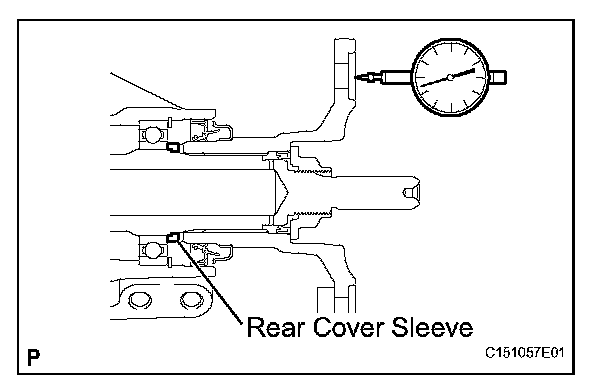 (a) Using a dial indicator, measure the output shaft end play. Then choose from the 15 sleeve thicknesses in the table so that the measured value is within the standard value.