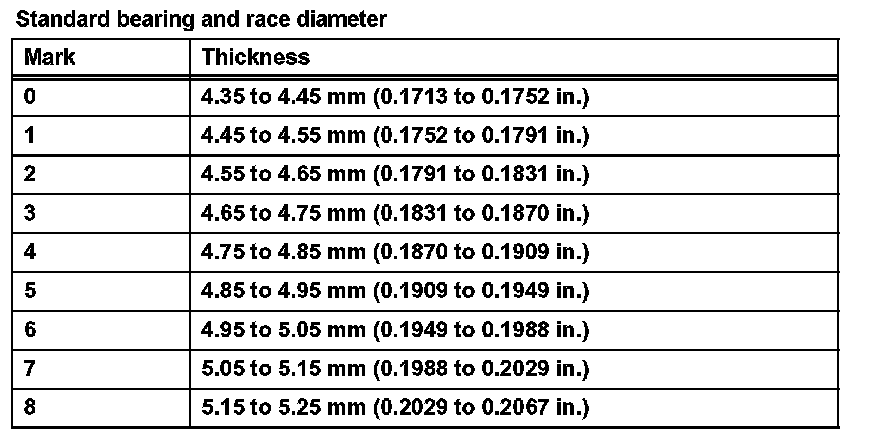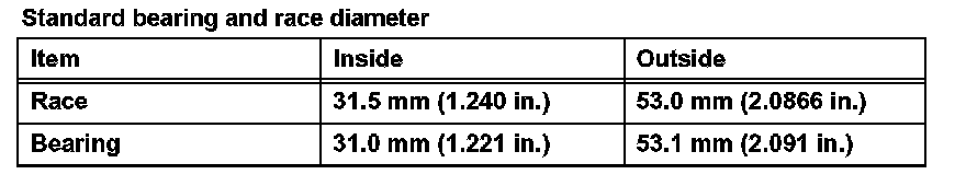 Standard end play: 0.21 to 0.36 mm (0.0083 to 0.0142 in.)