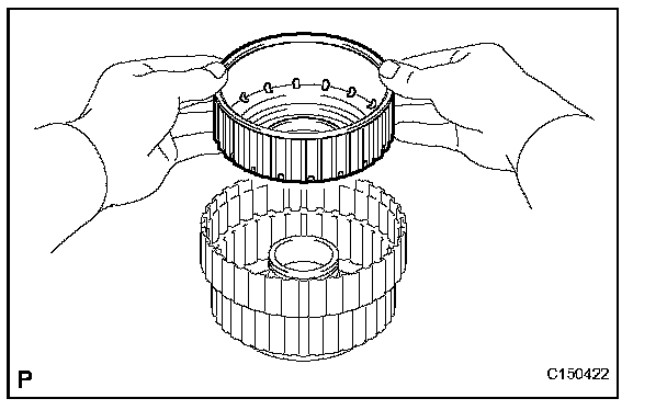 ^ Before installing the overdrive and reverse multiple clutch, apply ATF to the No. 3 clutch drum bush's sliding surfaces. After the installation, check that the No. 3 clutch drum rotates smoothly.