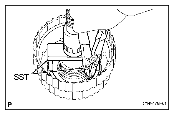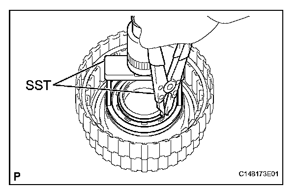 (d) Using SST, install the snap ring.