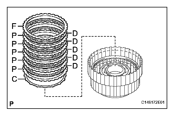 (c) Assemble the 5 brake plates, 5 brake discs, and brake flange, and measure length C in the illustration. *3