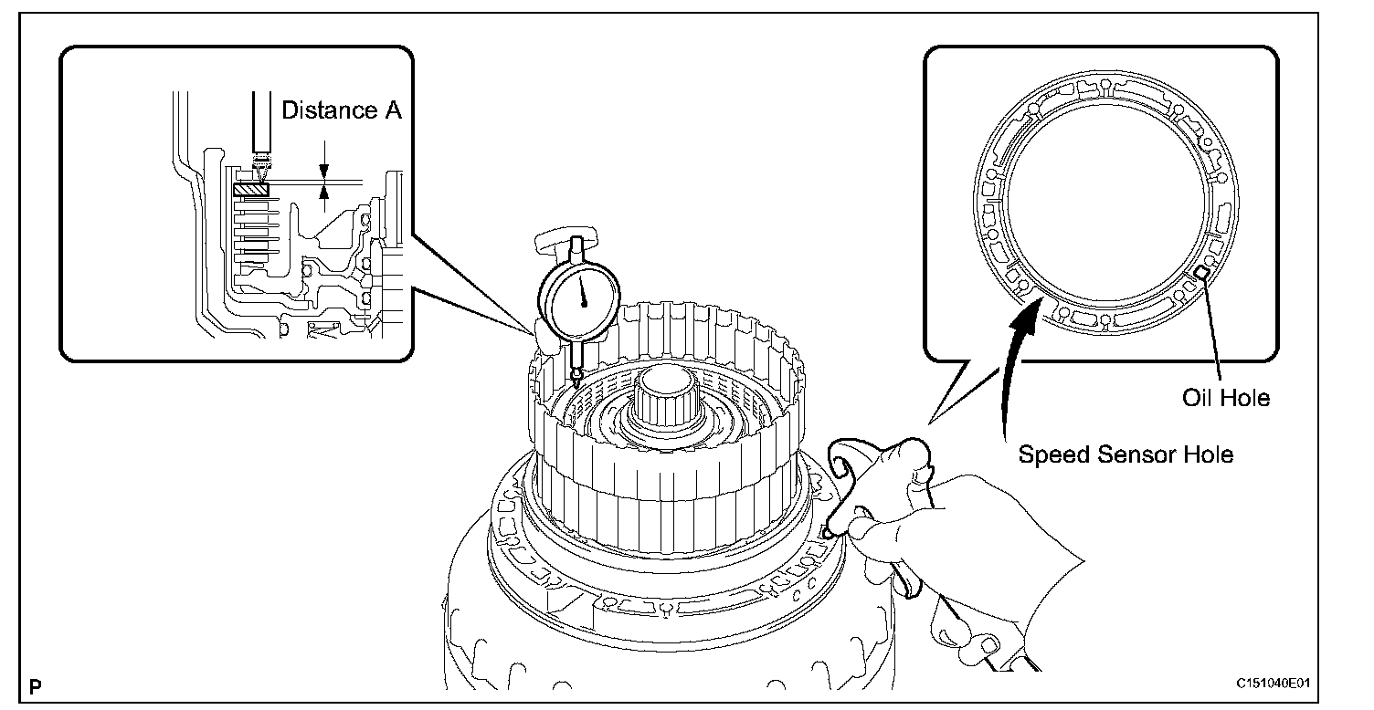 (a) Measure length A (from the step of the oil pump installation surface of the transmission case to the step of the No. 1 brake flange installation surface) in the illustration. *1