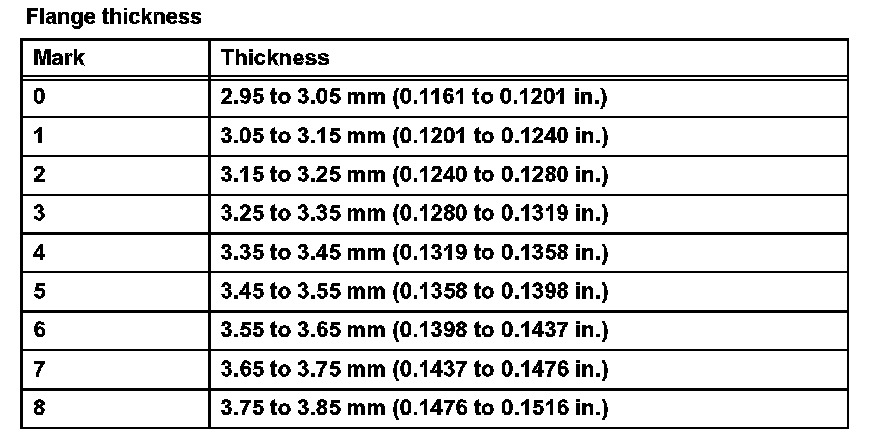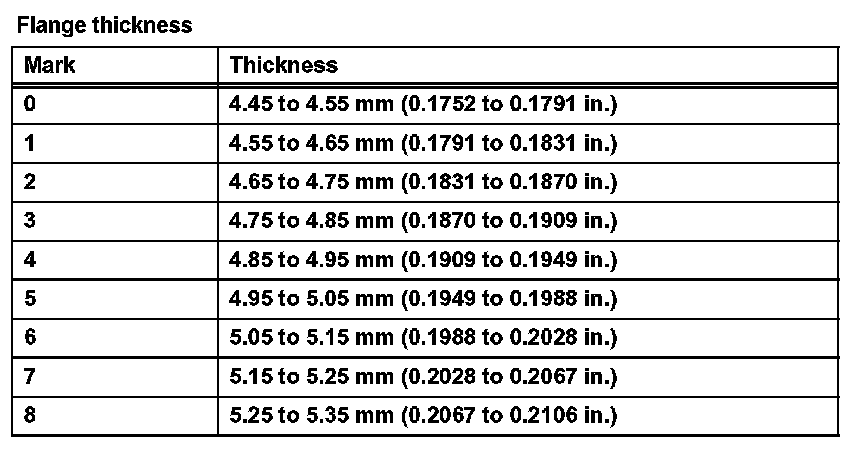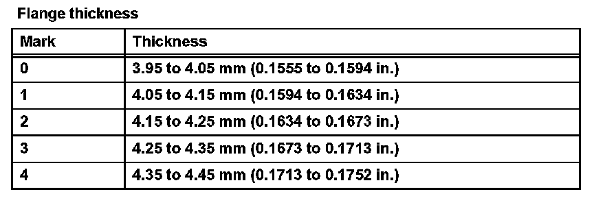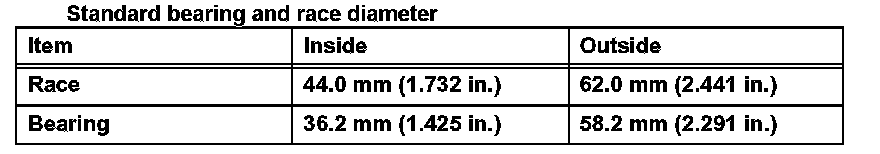 Standard: 59.77 to 60.03 mm (2.3531 to 2.3634 in.)