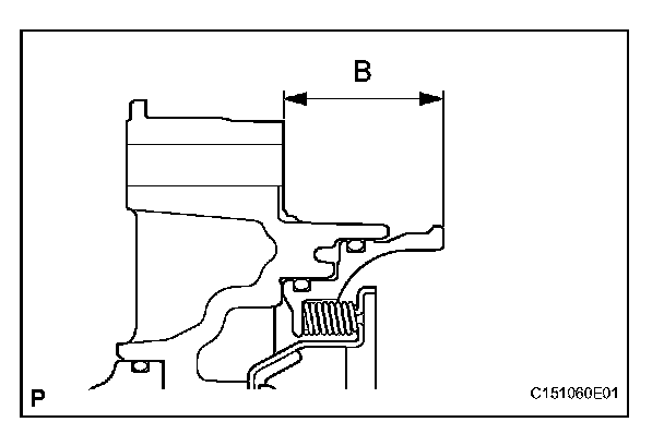 (b) Measure length B (from the flange face of the oil pump assembly to the tip of the No. 1 brake piston) in the illustration. *2