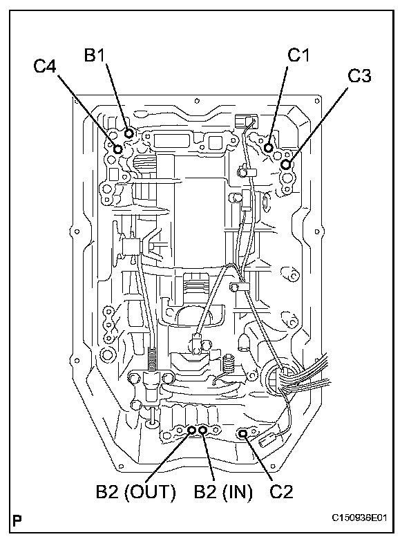 (a) Check the operating sound while applying compressed air into the oil holes indicated in the illustration.