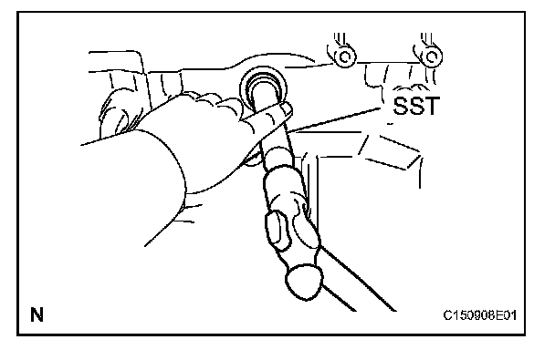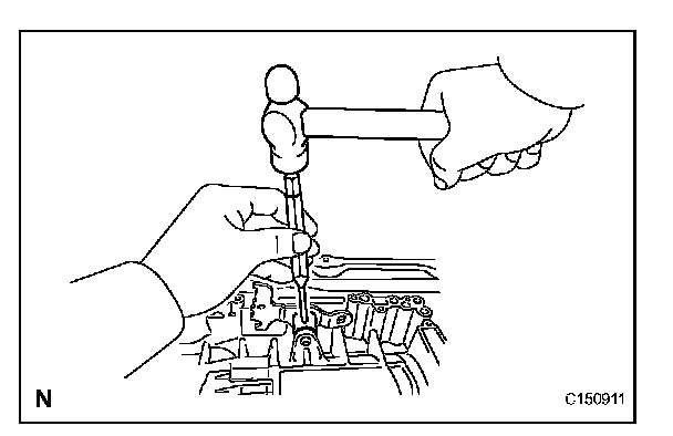 (a) Using SST and a hammer, tap in a new oil seal.