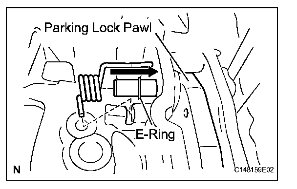(b) Install the parking lock pawl, shaft and spring.
