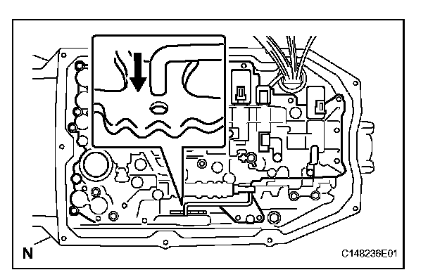 (a) Align the groove of the manual valve lever with the pin of the manual valve and install the pin.