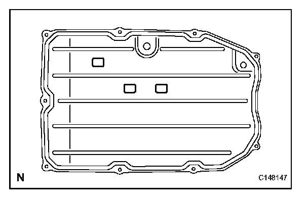 ^ When tightening the oil pan, make sure that the gasket is not pinched between the gasket tightening area's sleeve and the transmission's seal surface.