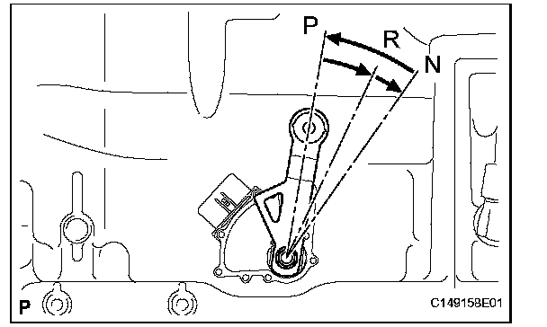 (b) Shift the manual valve lever to the P position, and confirm that the output shaft is correctly locked up by the lock pawl.