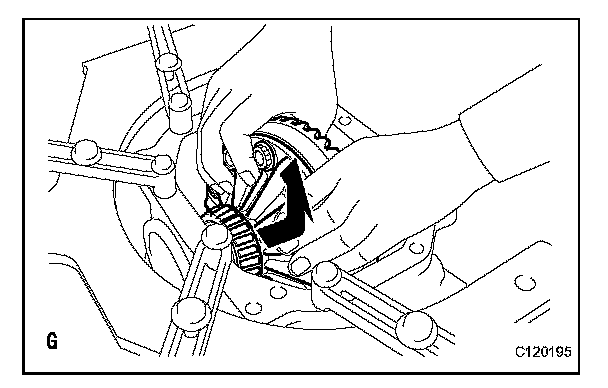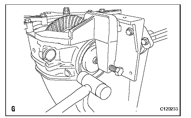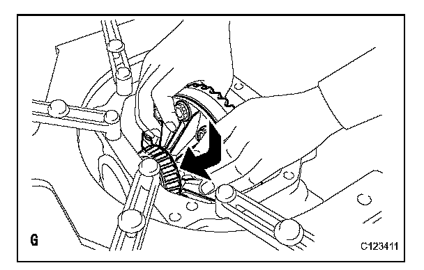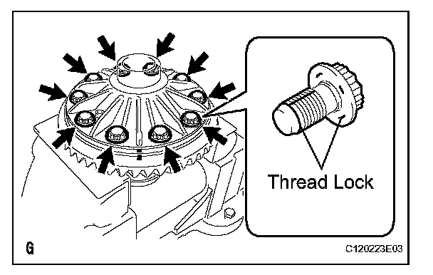 (g) Temporarily tighten the 10 differential case bolts uniformly in several passes, and then tighten them to the torque specification.