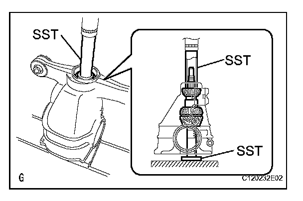 (a) Using SST and a press, press in the rear drive pinion front tapered roller bearing outer race.