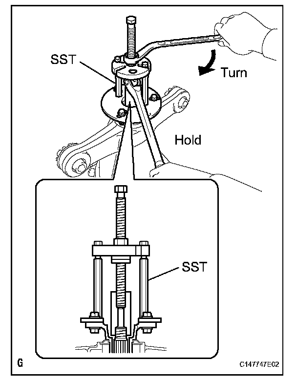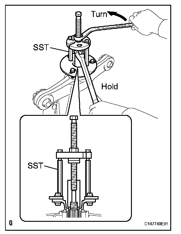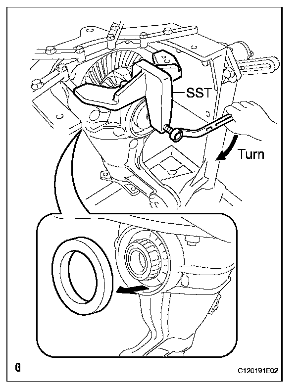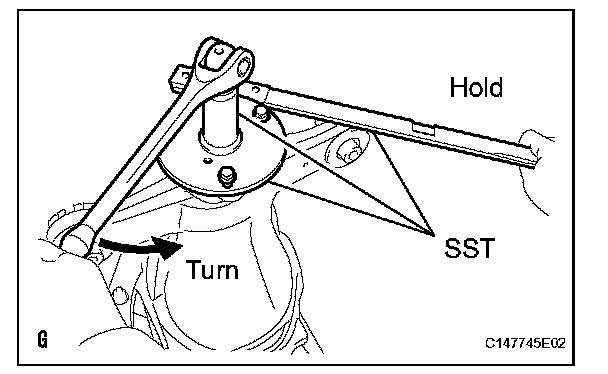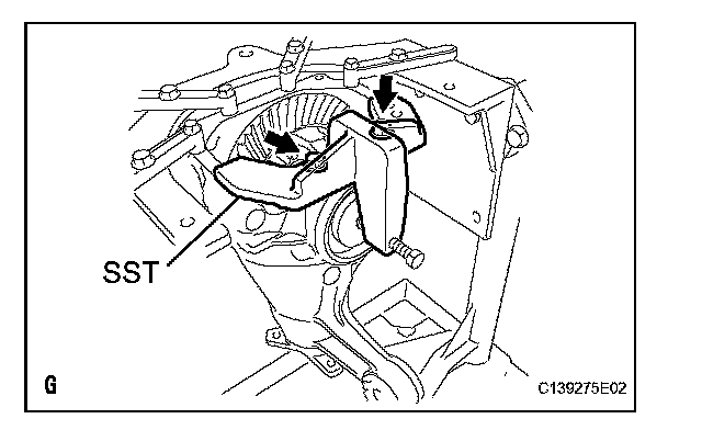 (b) Remove the 2 bolts and SST from the differential carrier.