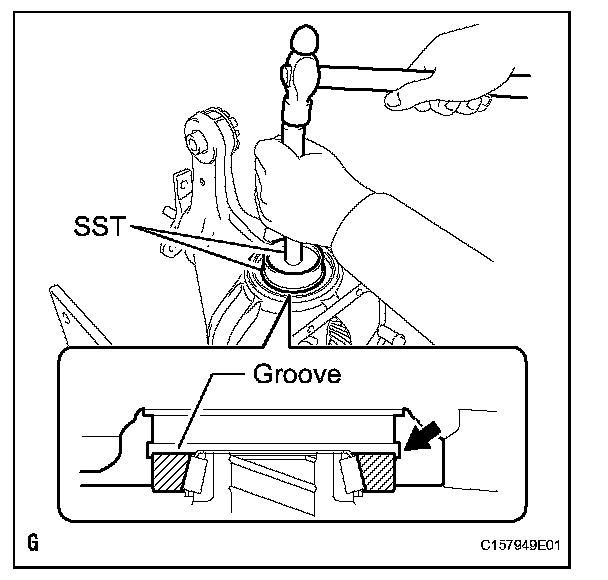 (a) Using SST and a hammer, tap in the ring gear tooth side case bearing outer race.