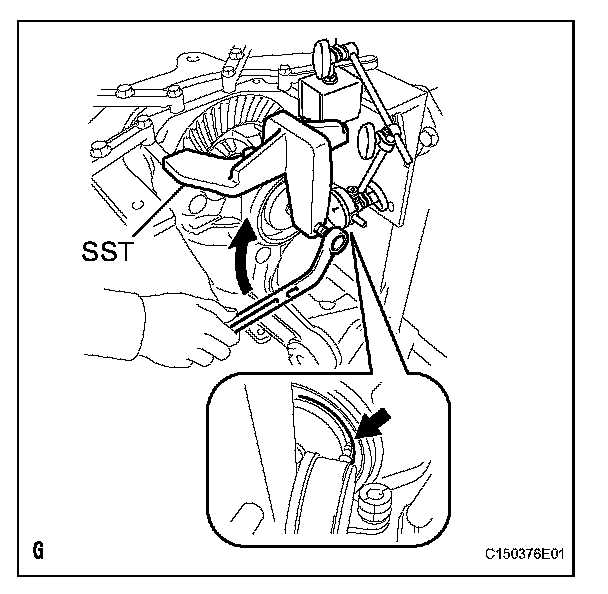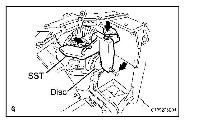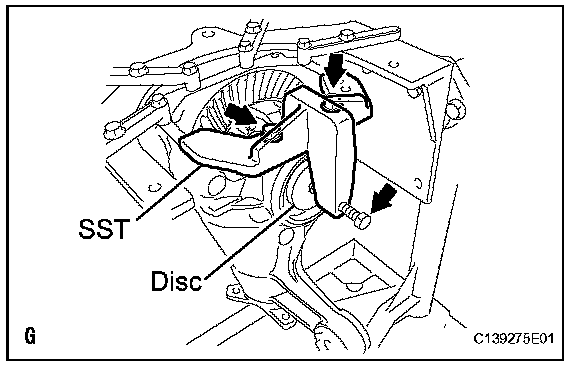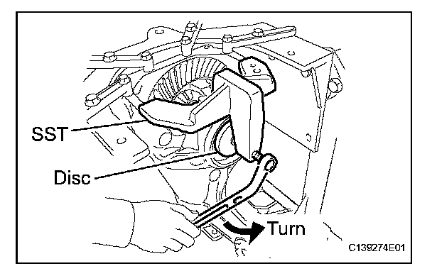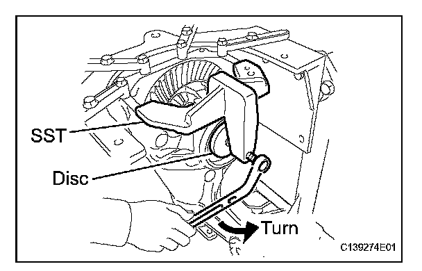 (c) Tighten SST bolt until SST disc lightly touches the case bearing outer race.