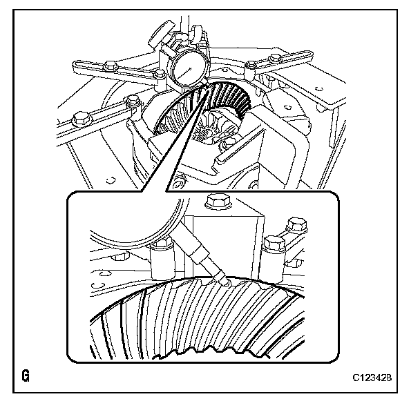 (e) Using a dial indicator, measure the backlash of the ring gear.