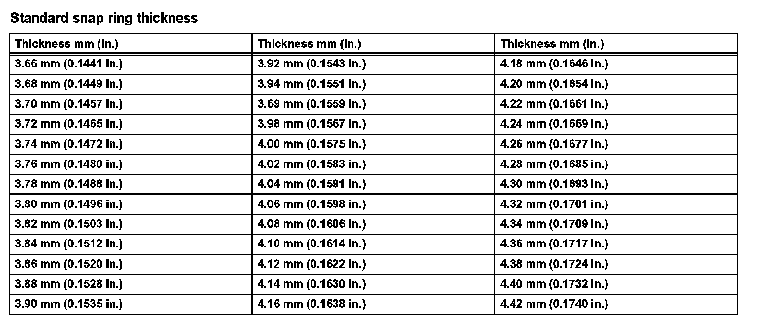 Standard snap ring thickness: