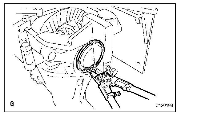 (i) Using snap ring pliers, install a side gear shaft snap ring with a different thickness than the one removed.