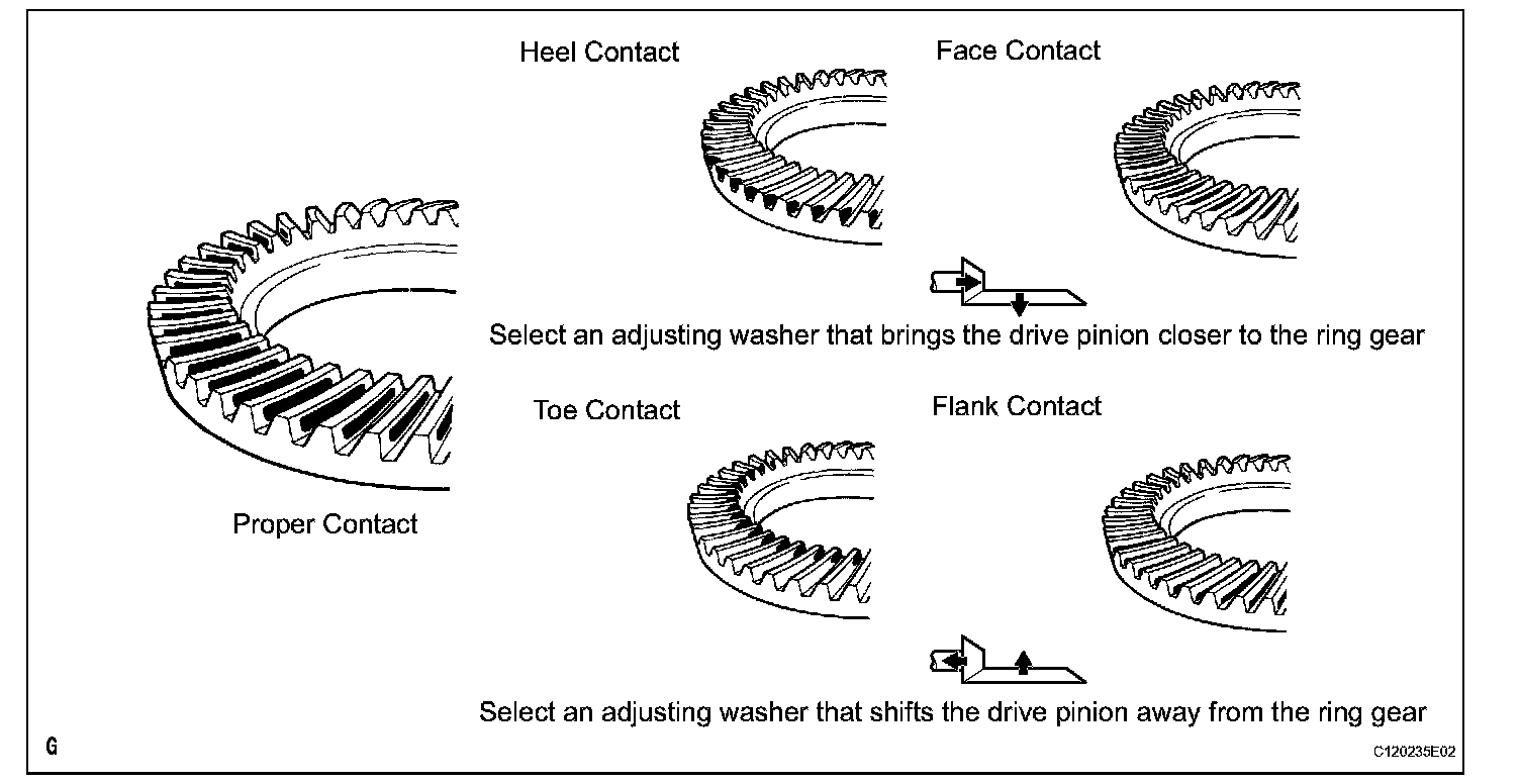 NOTICE: Check the tooth contact pattern at 4 or more positions around the circumference of the ring gear.