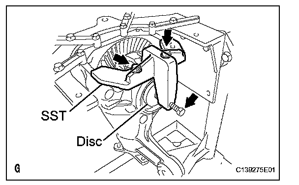 (c) Tighten SST bolt until SST disc lightly touches the case bearing outer race.