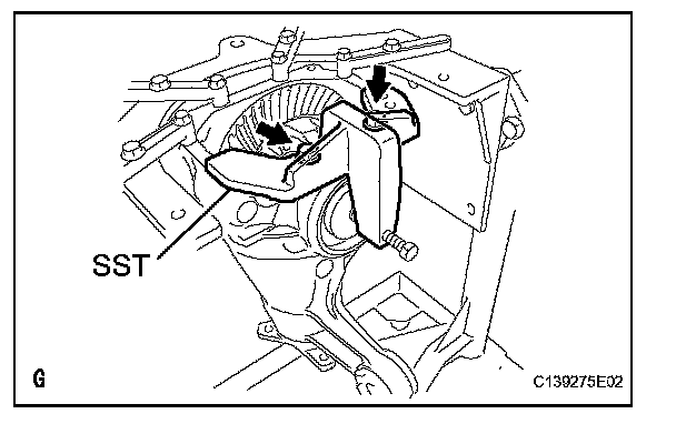 (g) Remove the 2 bolts and SST from the differential carrier.