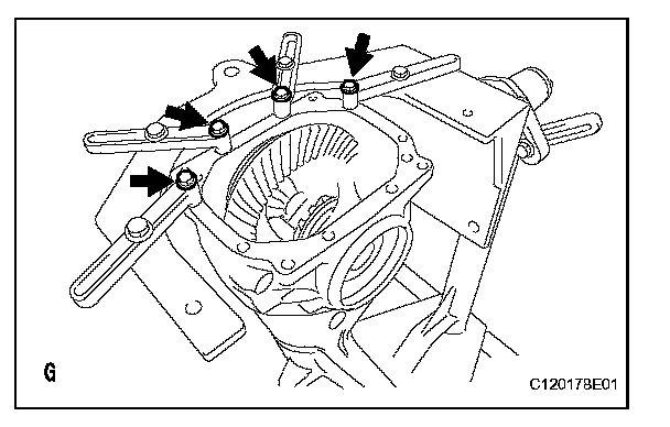 NOTICE: Observe the dial indicator to ensure that the shape of the differential carrier does not change more than 0.2 mm (0.008 in.).