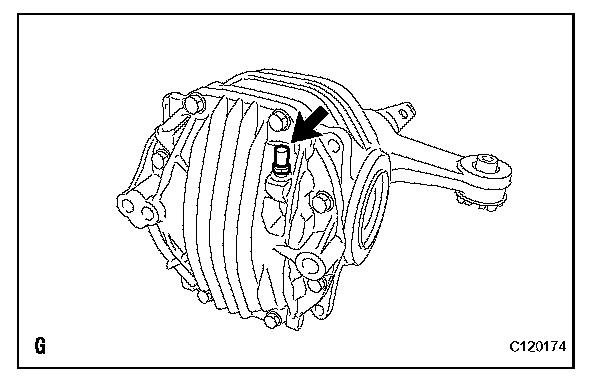 (a) Using a 10 mm socket hexagon wrench, install a new gasket and drain plug to the rear differential carrier.