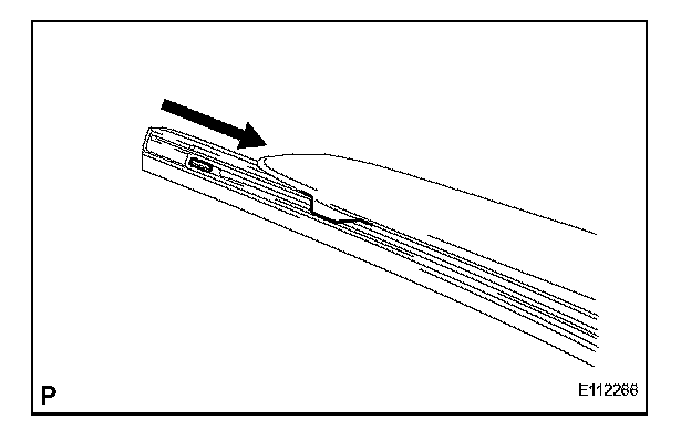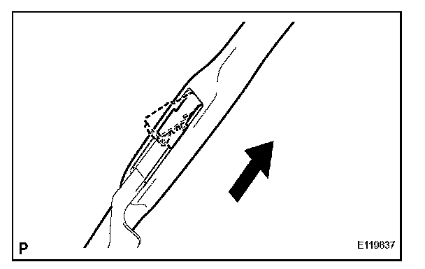 b. Install the wiper rubber to the claw of the wiper blade in the direction indicated by the arrow in the illustration.
