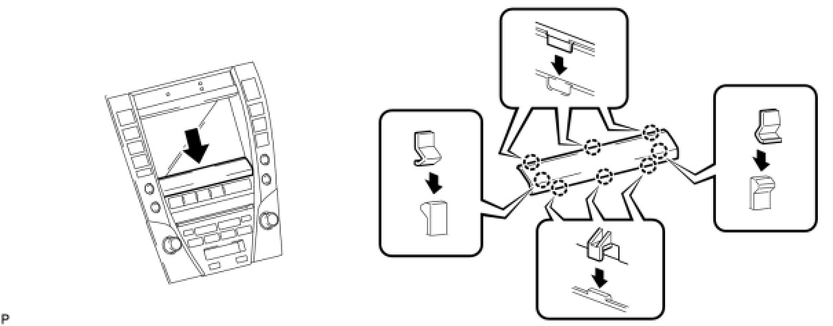 (a) Engage the 2 claws and 4 clips and install the multi-display assembly.