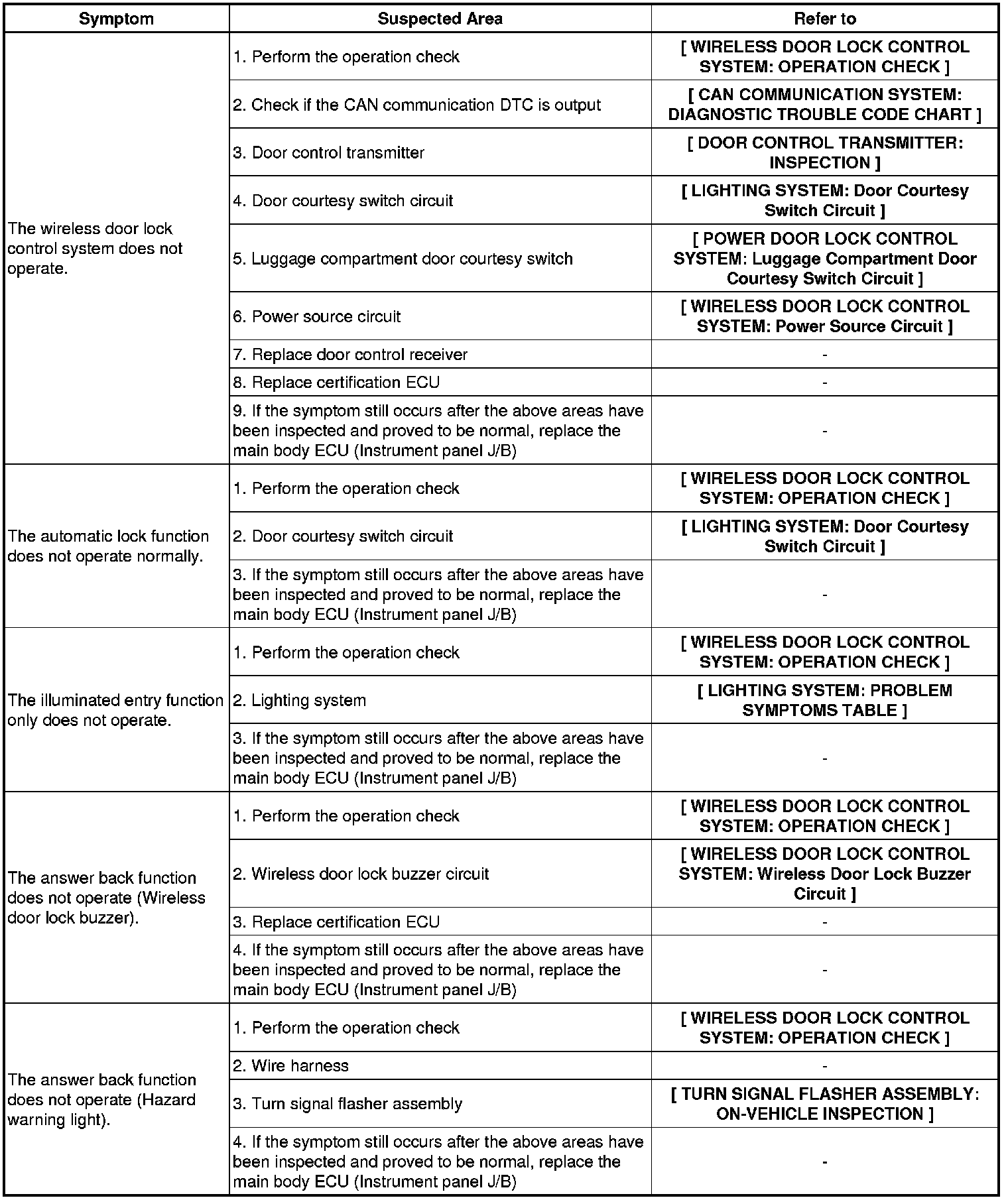 - The following is the troubleshooting procedure for the wireless door lock control of a vehicle without the smart key system.