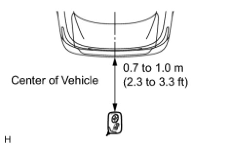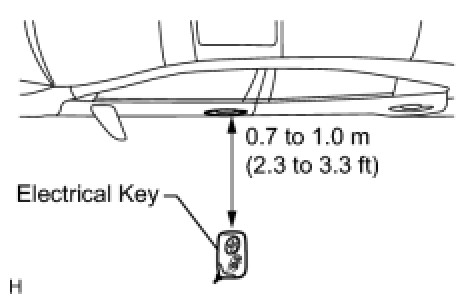 (2) Step 2: When the electrical key is brought within 0.7 to 1.0 m (2.3 to 3.3 ft) of the vehicle, check that the system enters unlock standby mode.