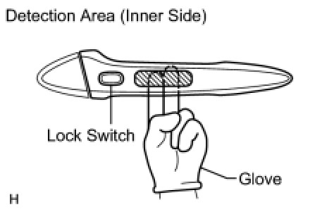 (5) Step 5: Inspect the door electrical key oscillator's response sensitivity. Wear protective gloves, set the system to unlock standby mode, and check that touching the inner side of the outside handle (the highlighted area in the illustration) with your finger causes the door to unlock.