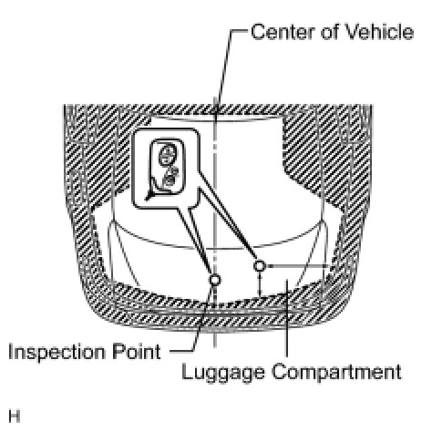 (2) Inspect the electrical key lock-in prevention's detection area. Pay attention to the direction of the electrical key shown in the illustration. When the electrical key is in either of the 2 inspection points in the illustration, check that: 1) closing the luggage compartment door sounds the electrical key's wireless buzzer, and 2) pressing the power luggage door open switch opens the luggage compartment door.