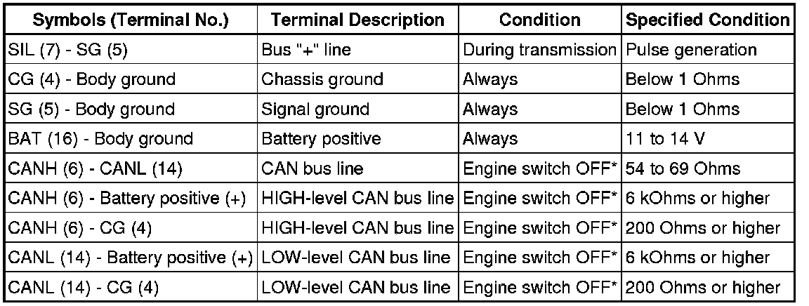 NOTE: *: Before measuring the resistance, leave the vehicle as is for at least 1 minute and do not operate the engine switch, any other switches or the doors.