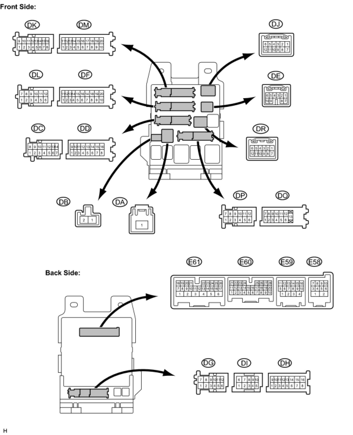 (a) Disconnect the E60, E61, DO, DK, DM, DD, DA, DF, DJ, and E58 J/B and ECU connectors.