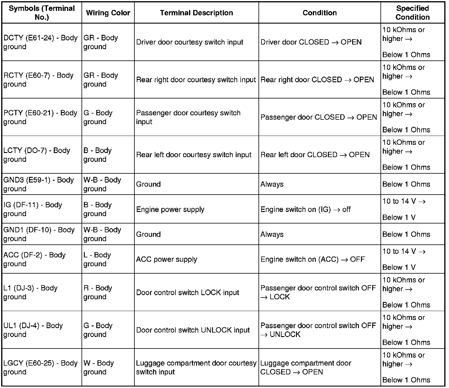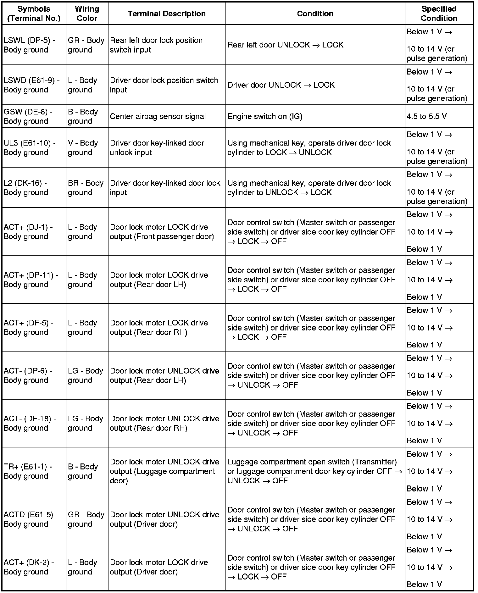 DOOR LOCK: POWER DOOR LOCK CONTROL SYSTEM: TERMINALS OF ECU
