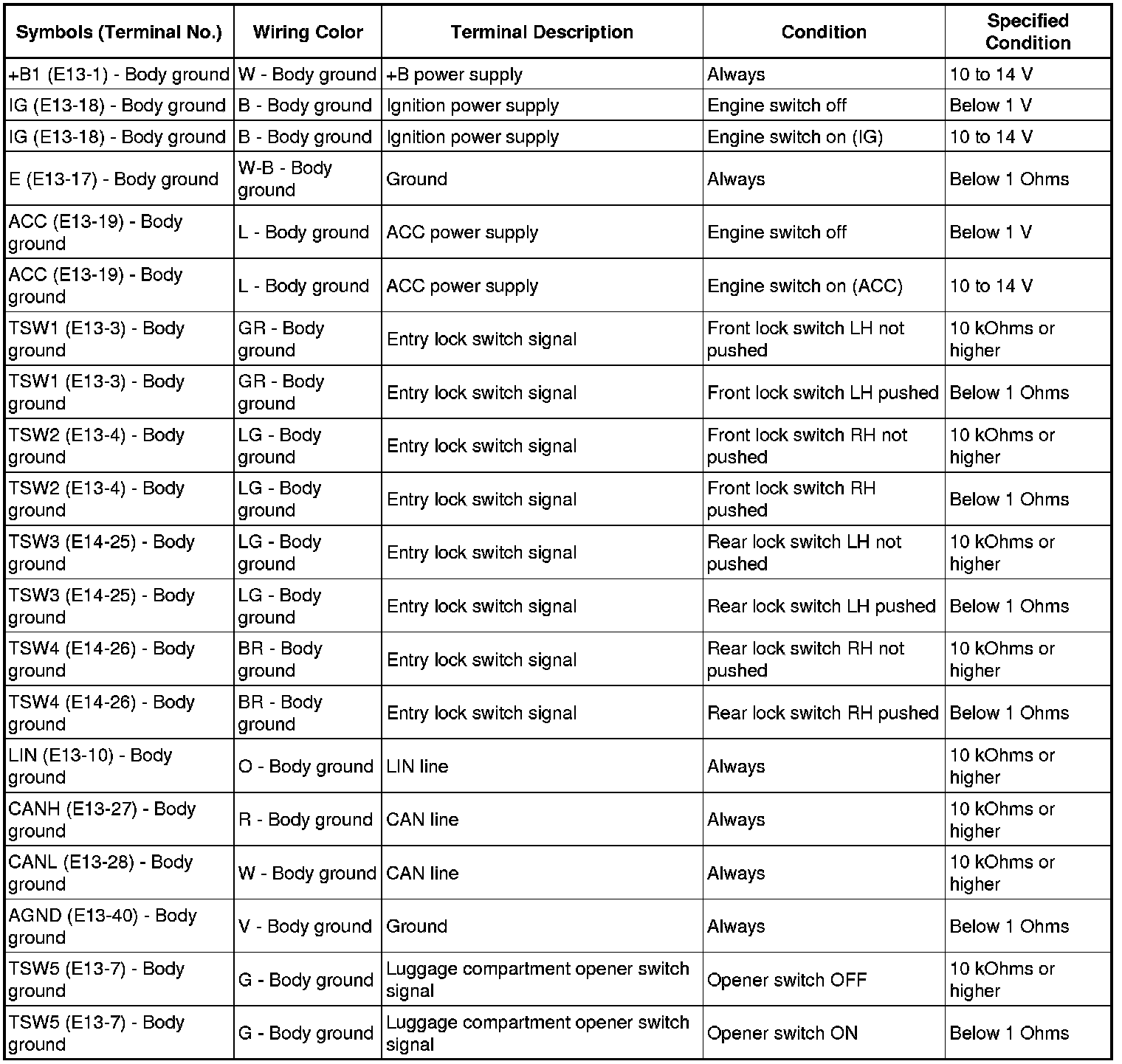 DOOR LOCK: SMART ACCESS SYSTEM WITH PUSH-BUTTON START: TERMINALS OF ECU